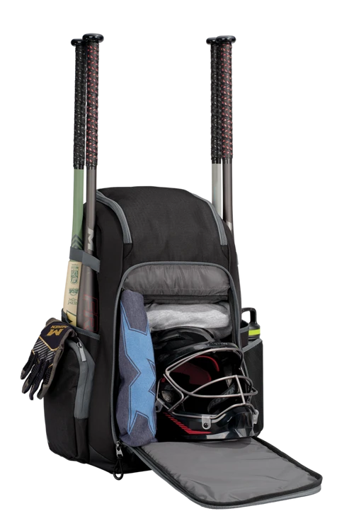 Keep your gear organized and accessible with the Miken Pro Deluxe Slo-Pitch Backpack. This slowpitch bag features four individual bat sleeves, a large main compartment, and a top glove compartment to help store and transport your equipment with ease an